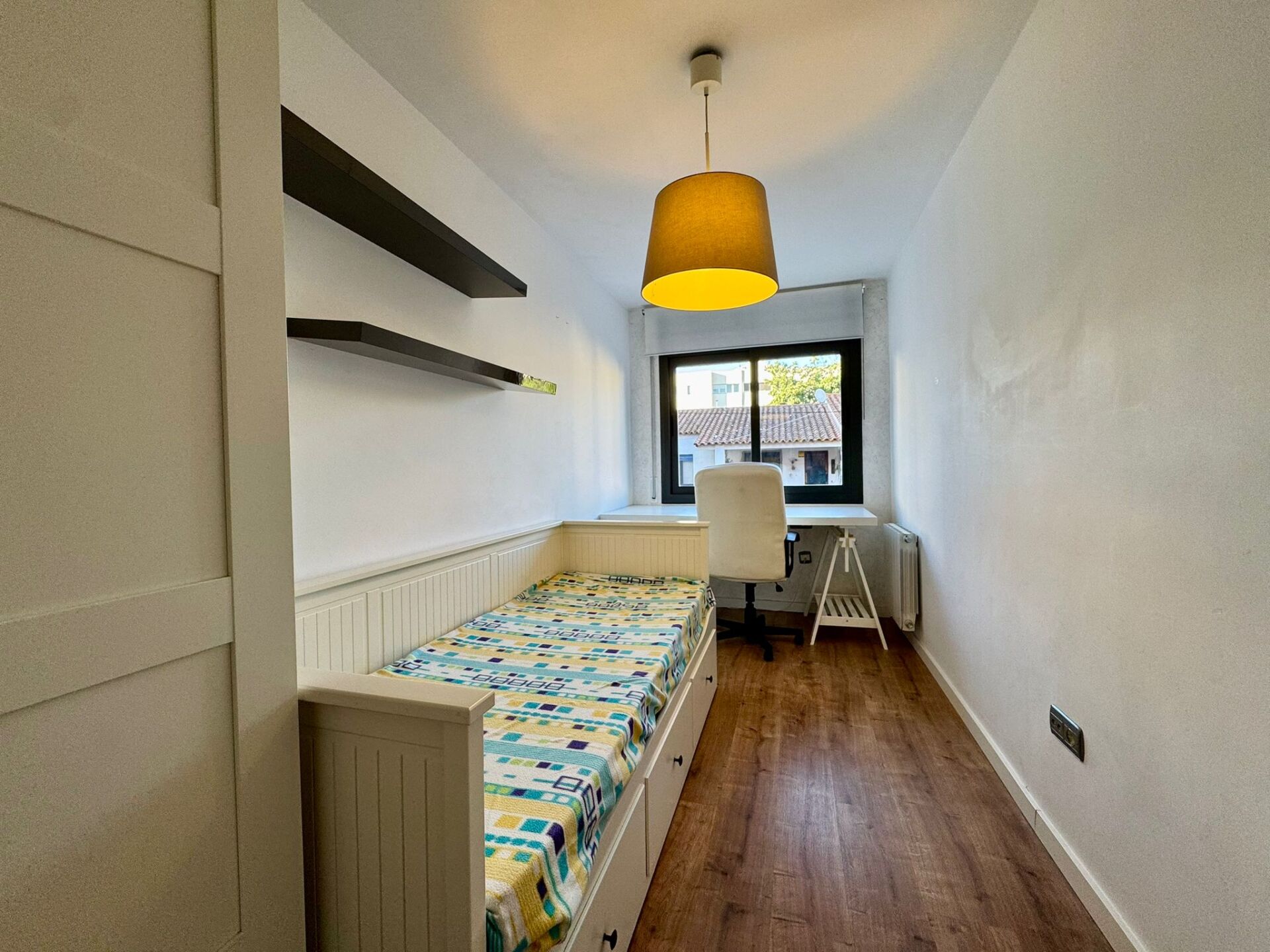 El piso se distribuye en recibidor, salón-comedor, cocina independiente con lavadero, tres habitaciones (dos de ellas dobles) y dos baños, uno de los cuales ha sido convertido en vestidor, manteniendo las instalaciones para poder recuperarlo fácilmente como baño.