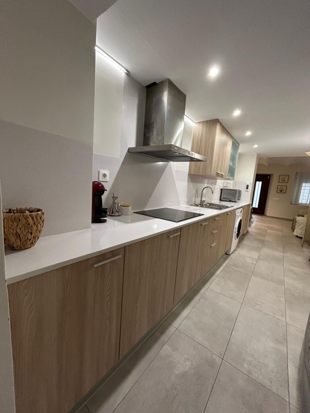 La zona de día destaca por un amplio salón-comedor integrado con una cocina abierta totalmente equipada, creando un espacio práctico y agradable para relajarse después de un día de playa o explorar la Costa Brava. El diseño interior combina líneas modernas con detalles cálidos, logrando un ambiente confortable y contemporáneo.