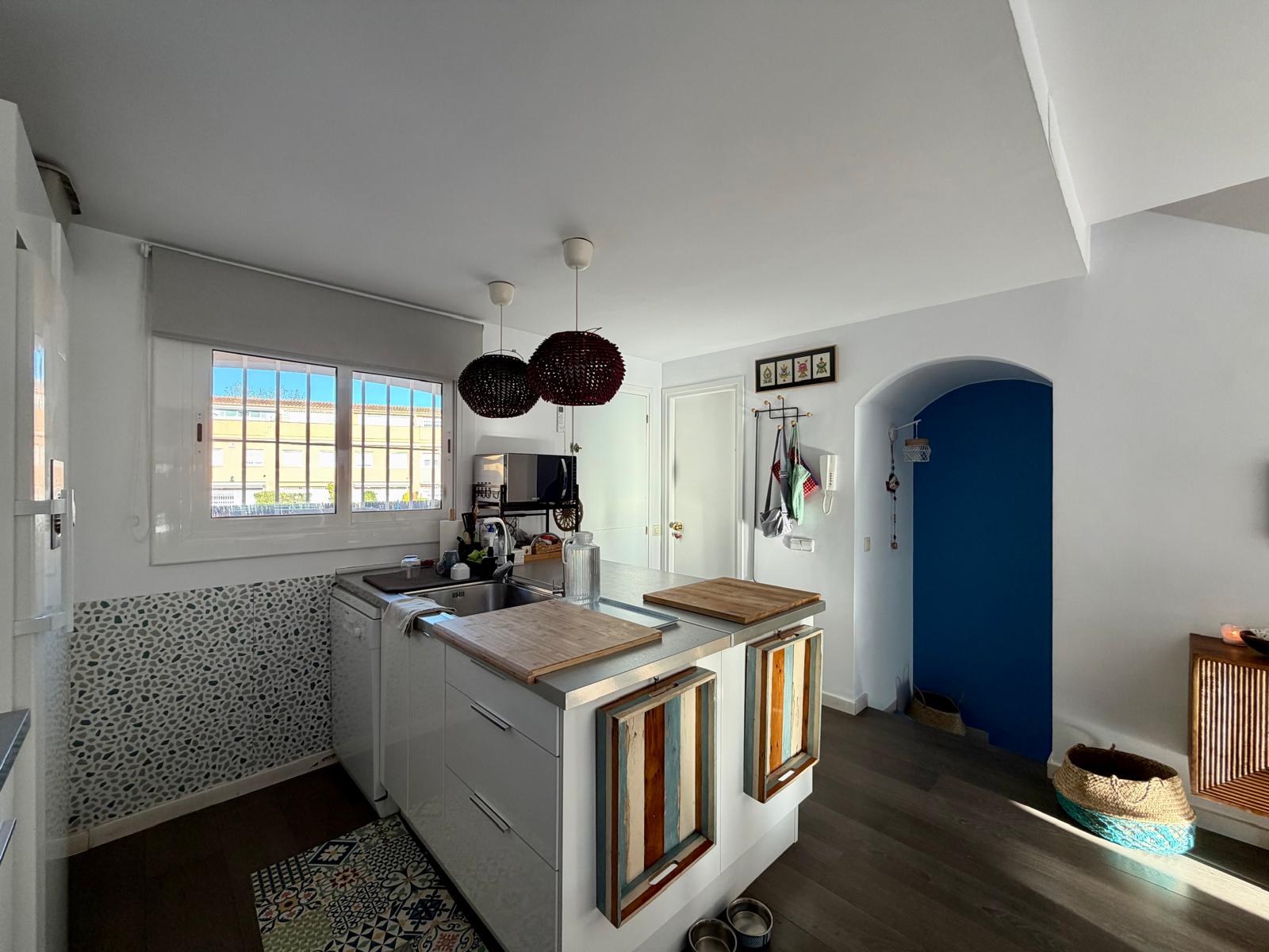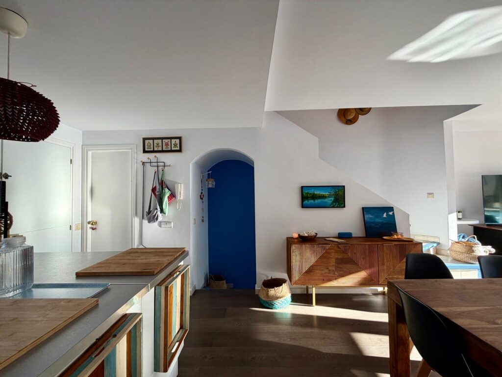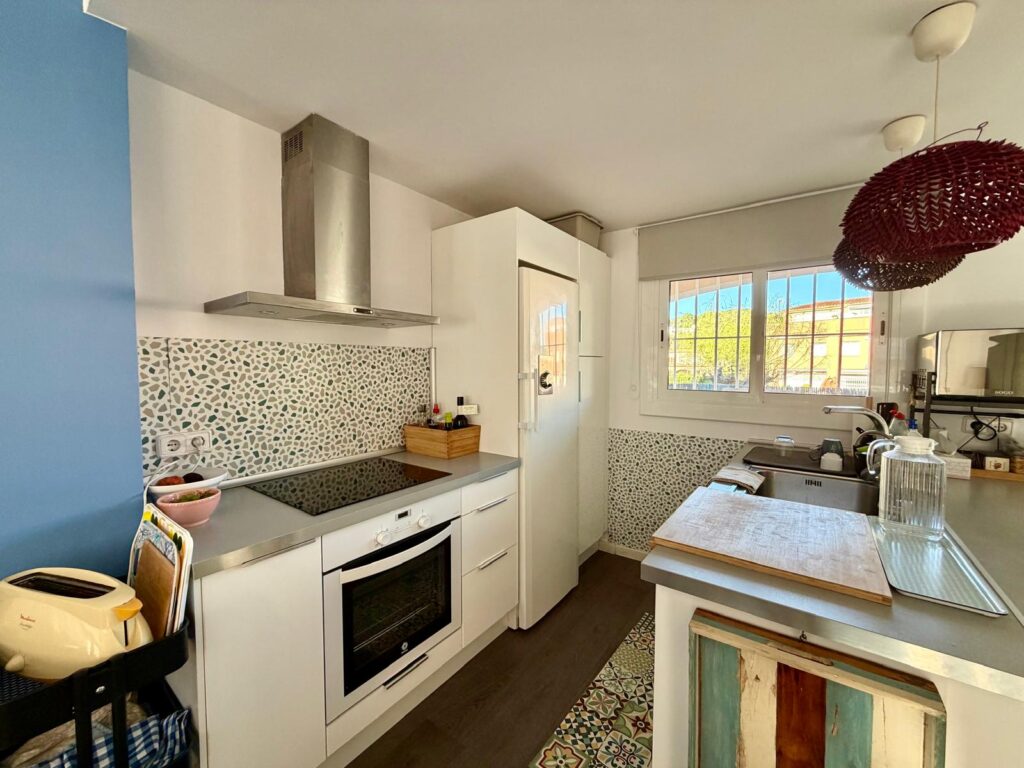 Además, incluye kayak para disfrutar del mar, así como lavadora y secadora para mayor comodidad. El espacio principal es un amplio salón-comedor con cocina abierta, muy luminoso, con salida directa a la terraza y a la zona comunitaria, donde hay barbacoa y piscina.