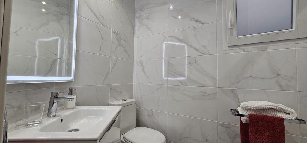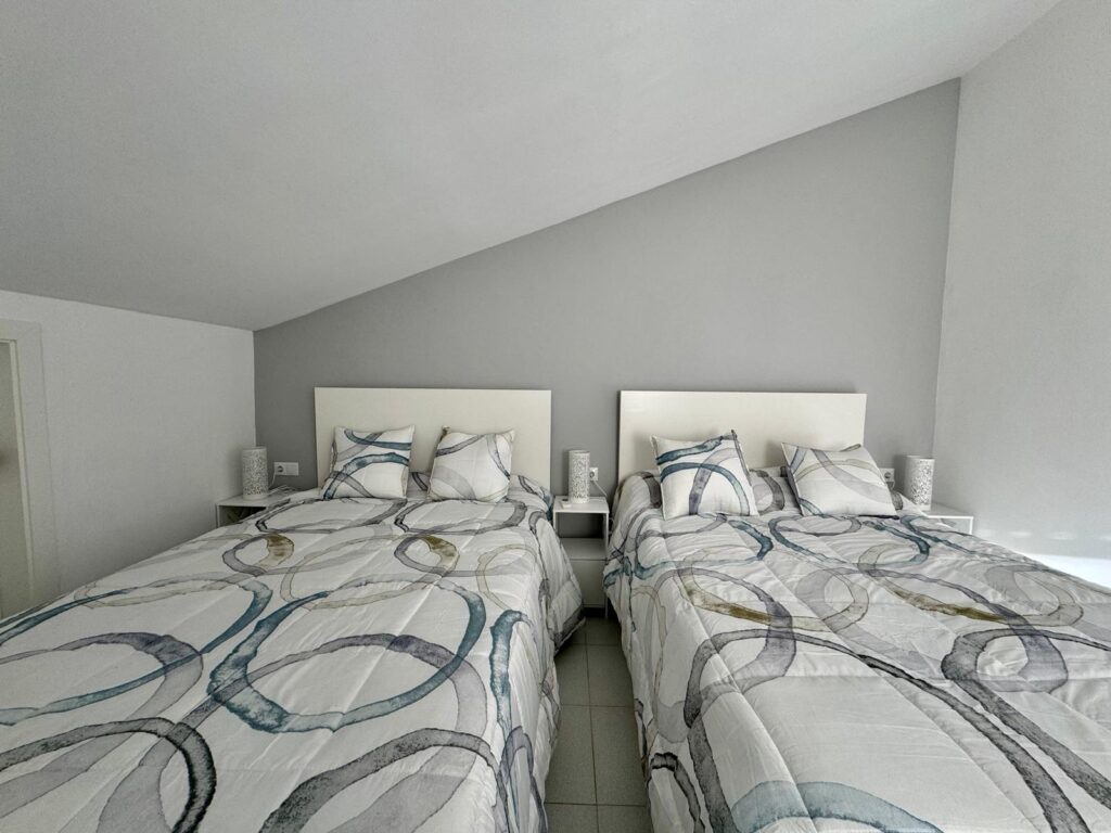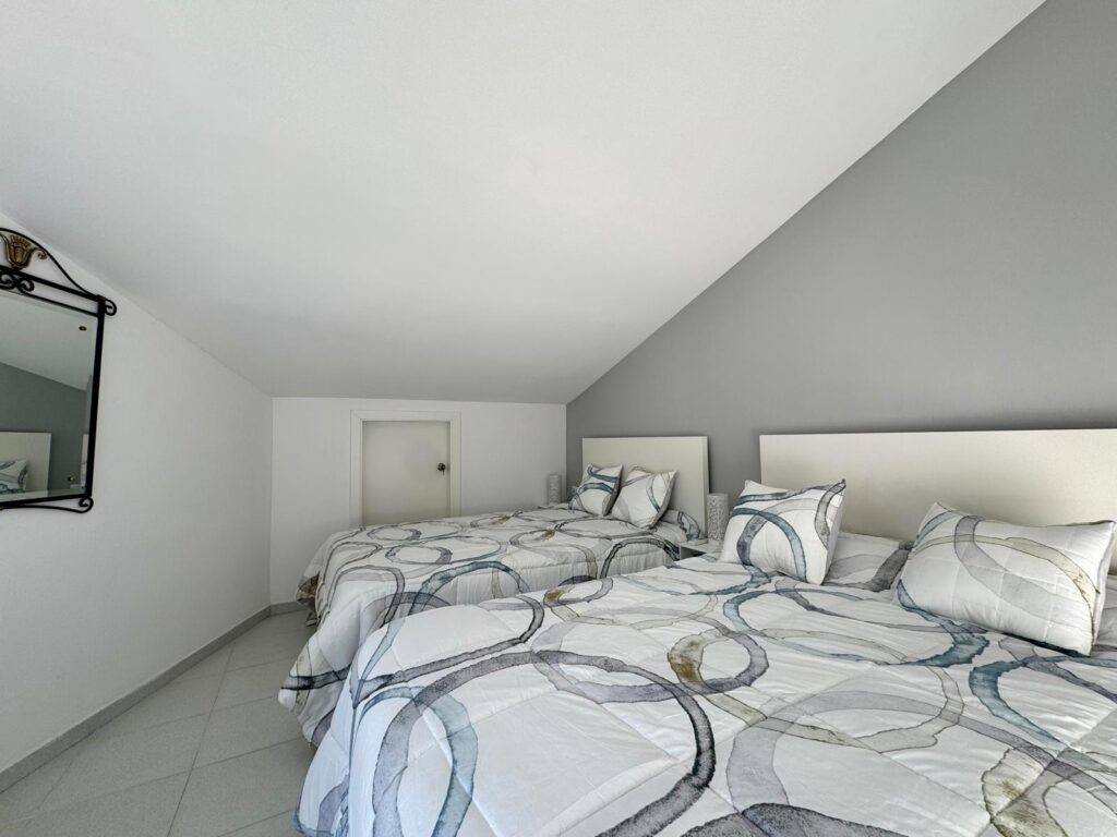 En la planta superior, el dúplex ofrece una habitación doble tipo suite con baño completo, un lavadero y una terraza solárium, ideal para tomar el sol con total privacidad.