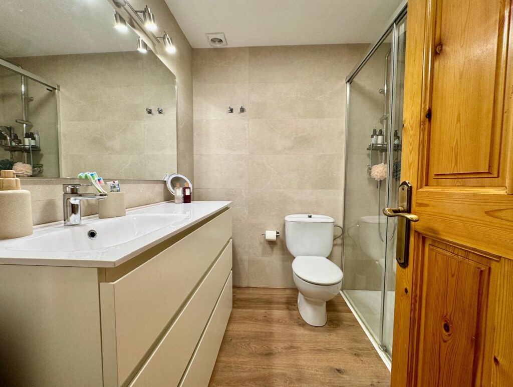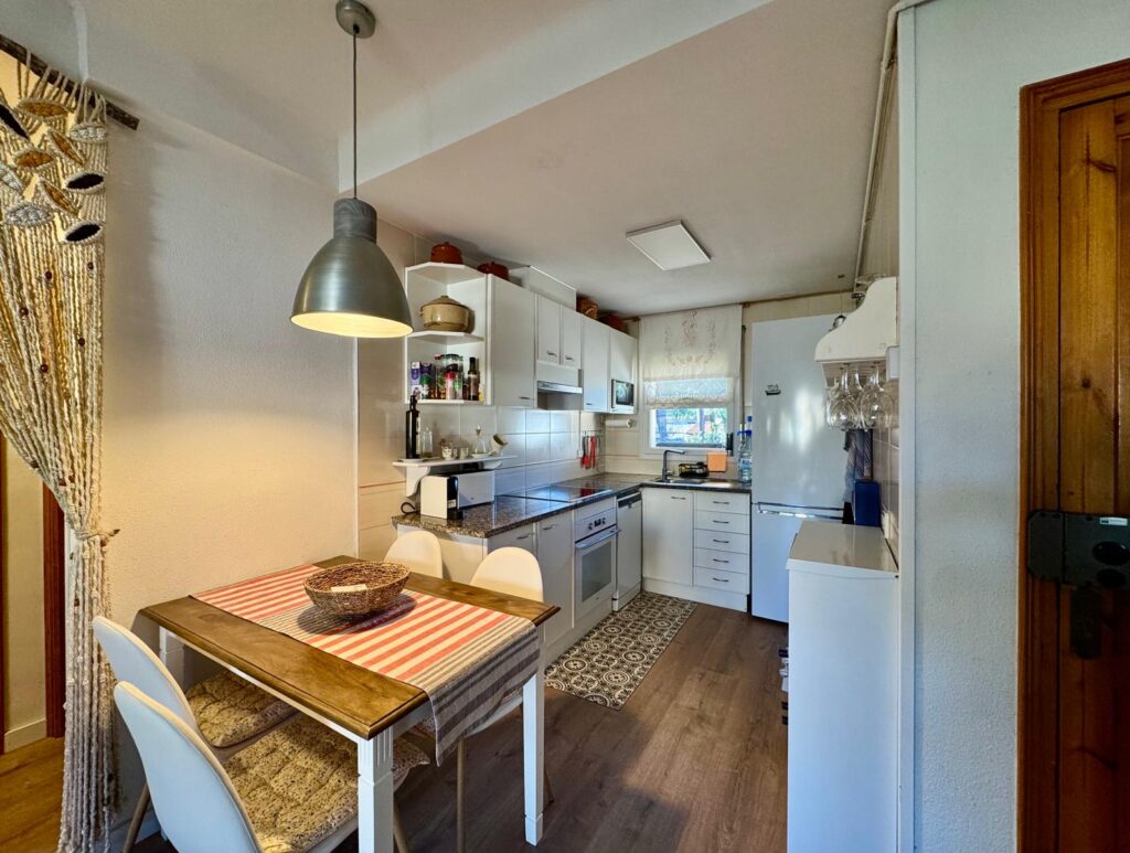 Dispone de un amplio salón-comedor con cocina abierta y acceso a una gran terraza orientada al sur, perfecta para relajarse o disfrutar de las comidas al aire libre.