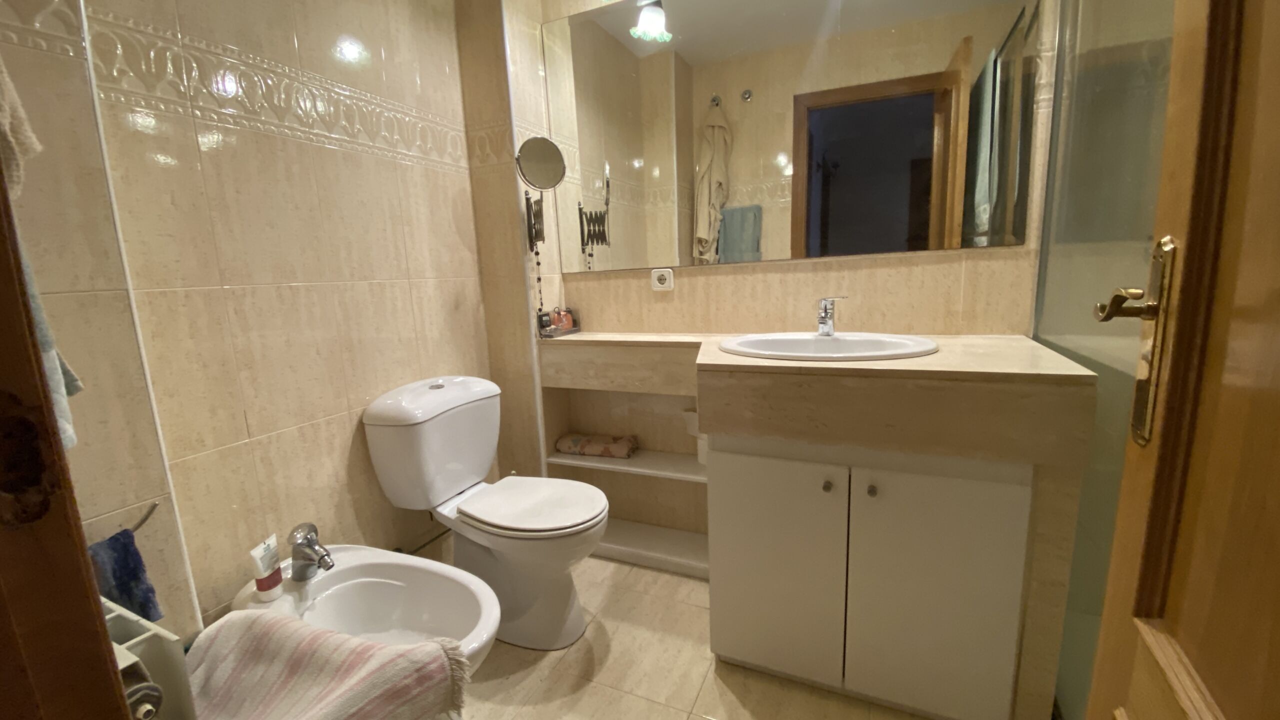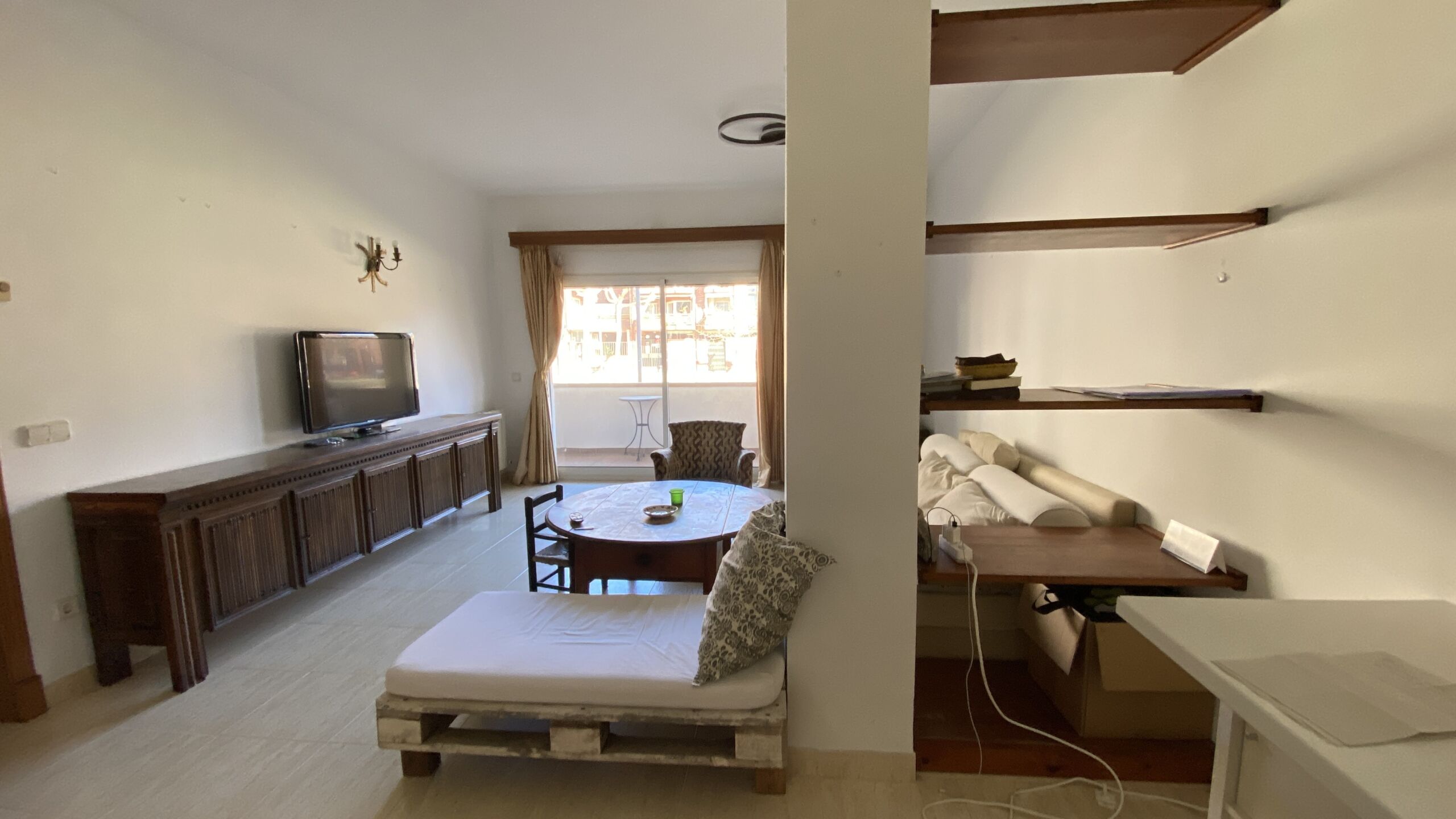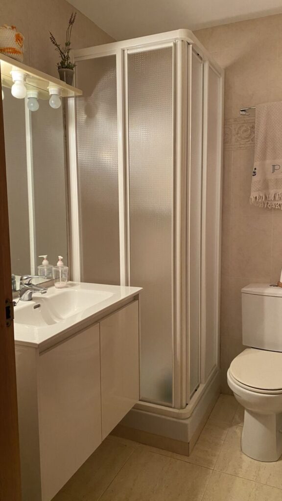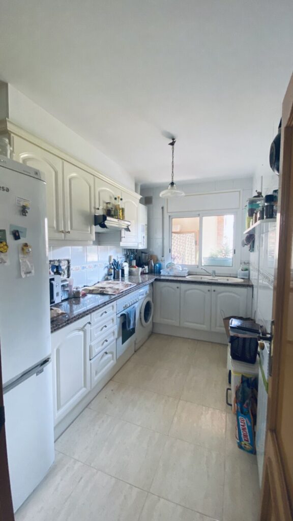 Se distribuye en tres habitaciones exteriores (dos dobles con armarios empotrados y una individual), dos baños completos, cocina independiente y un amplio salón-comedor muy luminoso con salida a la terraza. El salón cuenta con aire acondicionado y persiana automática, aportando un extra de confort.